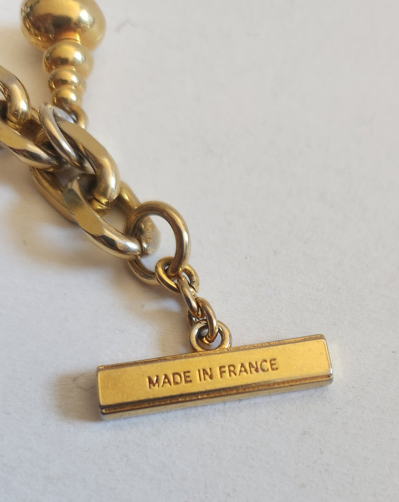Signé Loris Azzaro Paris sur le fermoir et Made in France sur la barre.