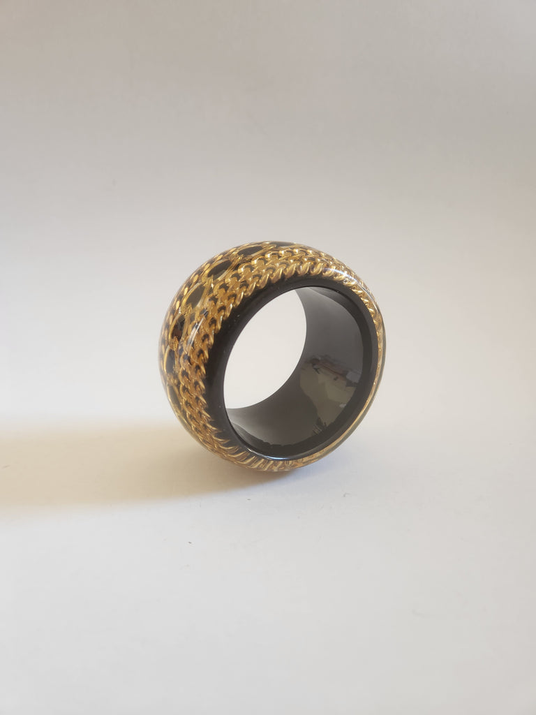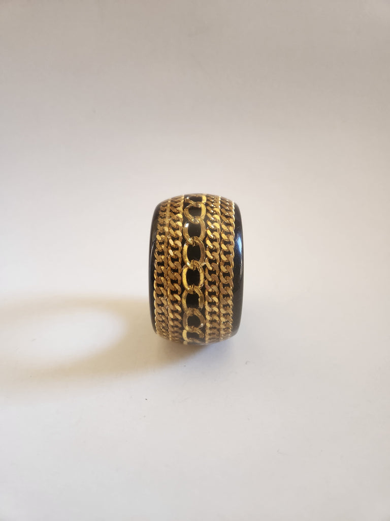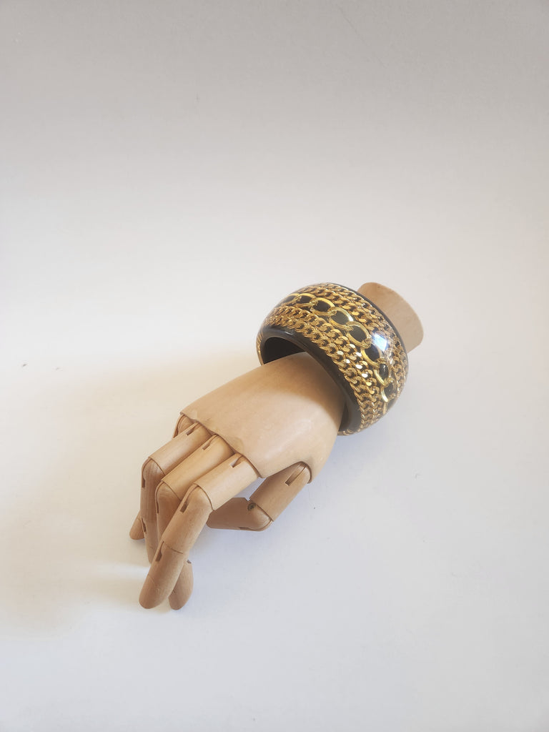 Manchette XXL en résine noire et transparente avec inclusion de chaines à maille gourmette.