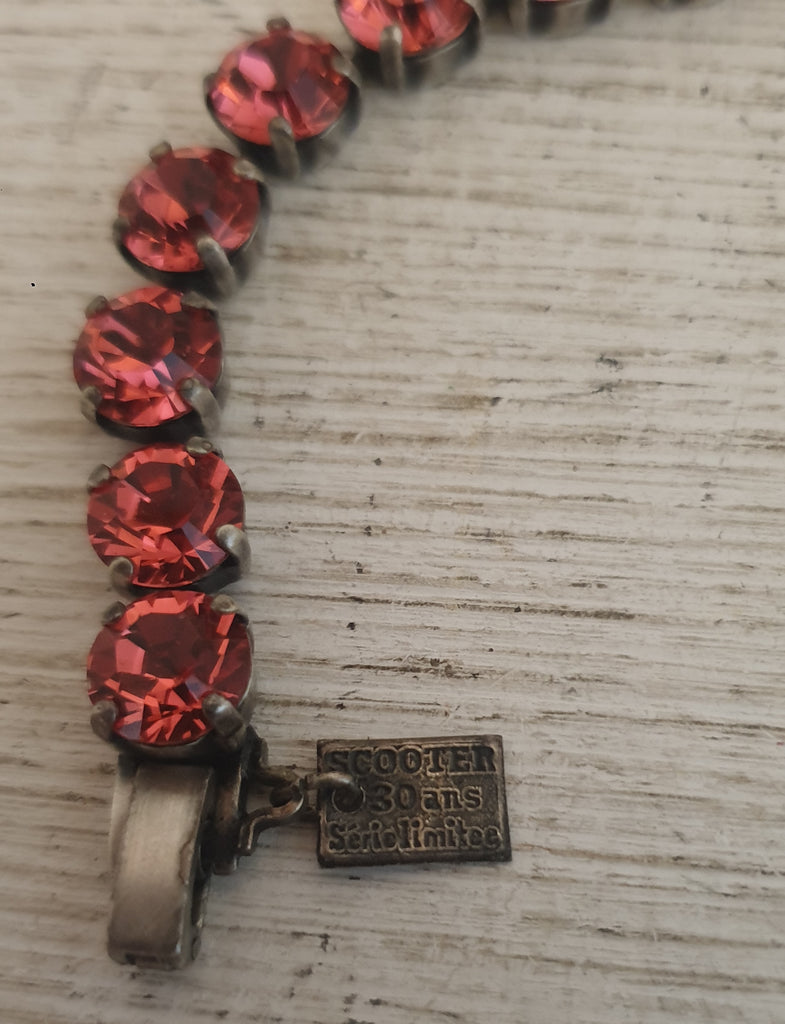 Bracelet iconique édité en série limitée de strass rose tyrien montés sur métal vieilli par Scooter.