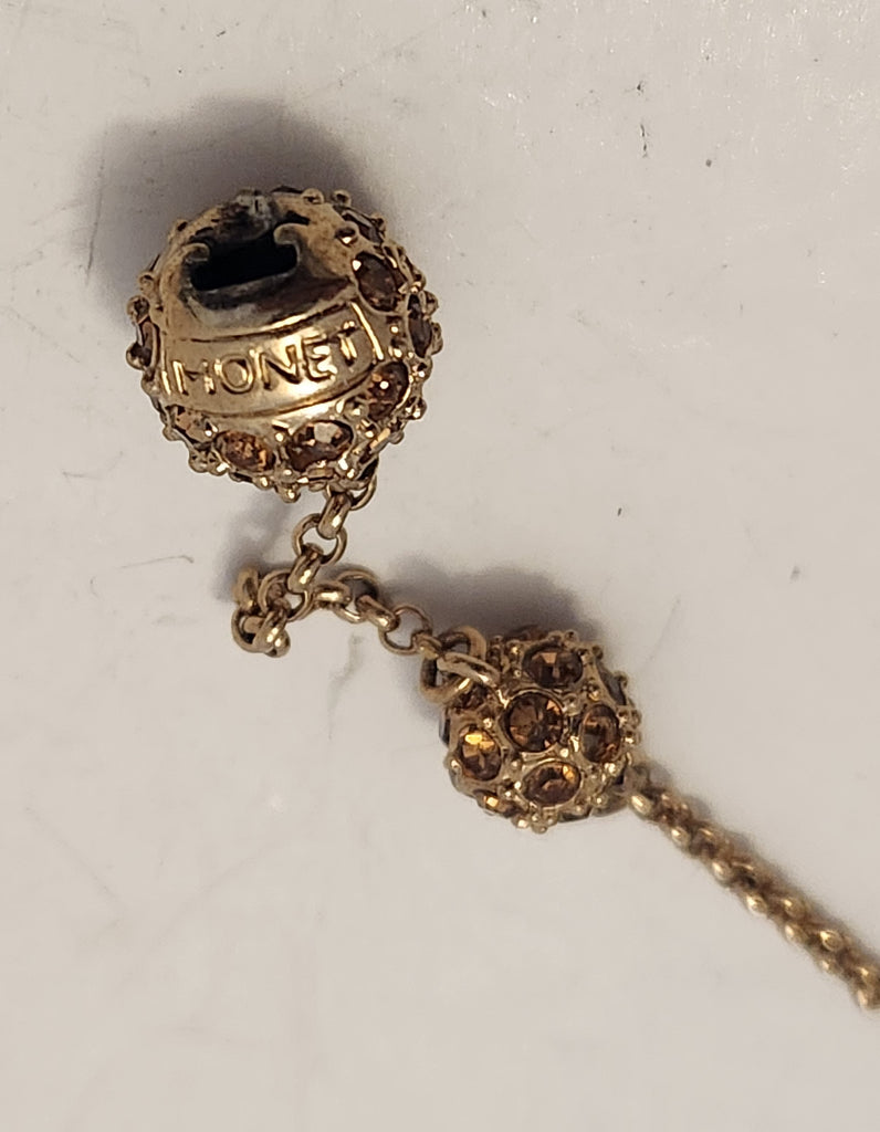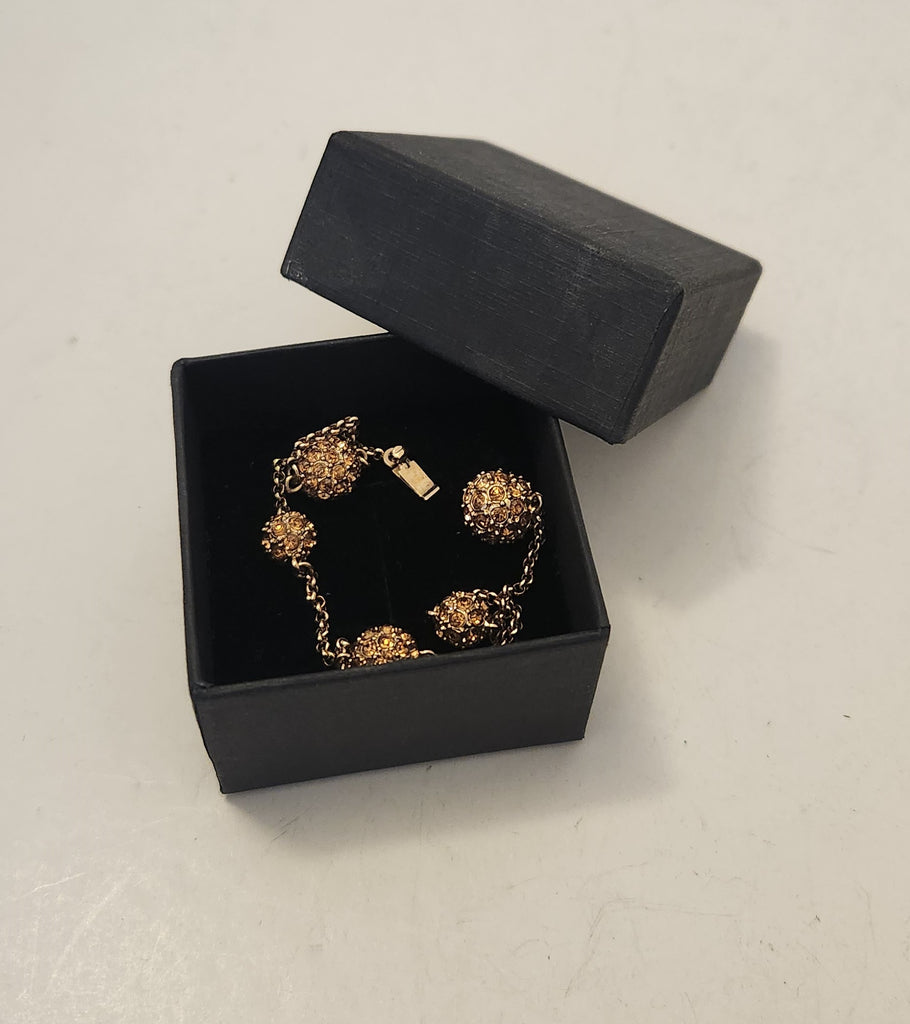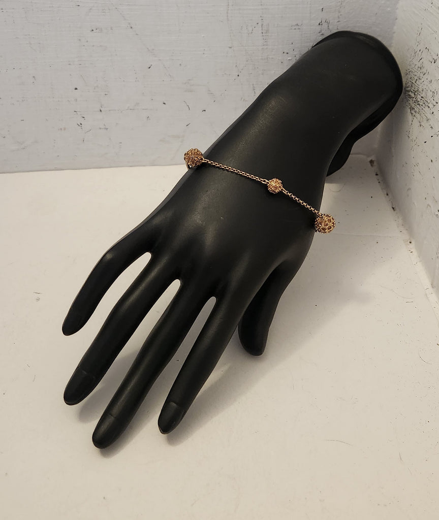 Délicat bracelet gourmette orné de boules pavées de cristaux orange.