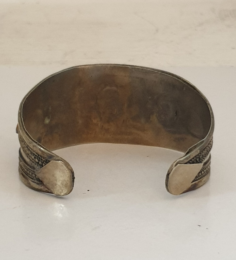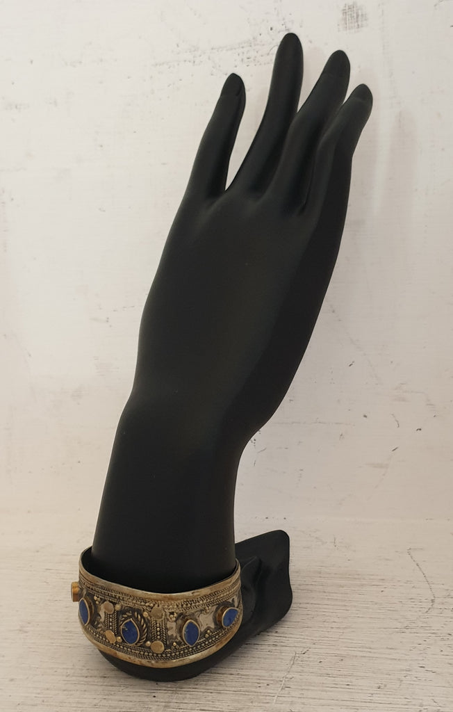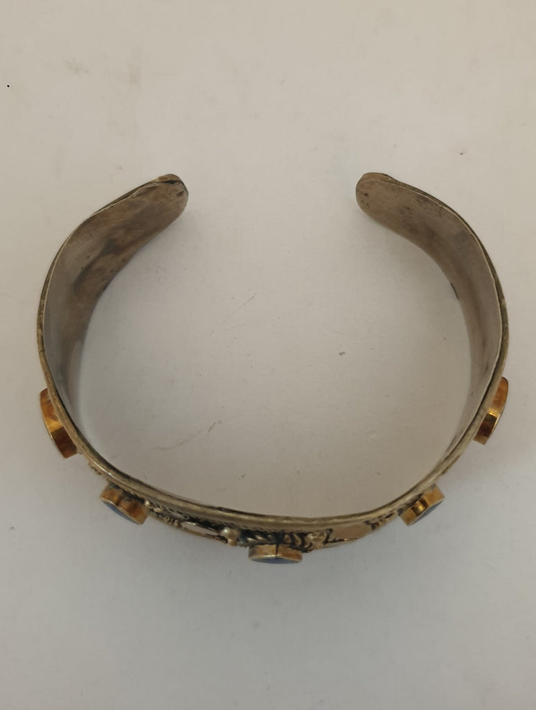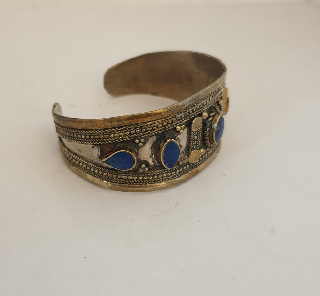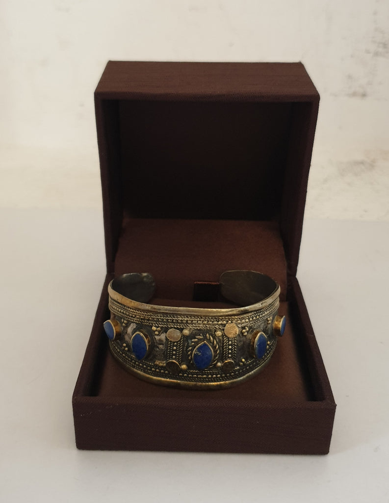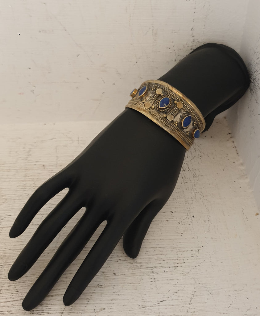 Manchette d'Afrique du Nord en laiton doré incrustée de lapis-lazuli.